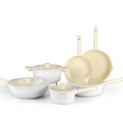 קרמיקה באיכות גבוהה ללא מקל אלומיניום לבן 8 יח כלים ערכת כלים וסירי ציפוי קרמיקה